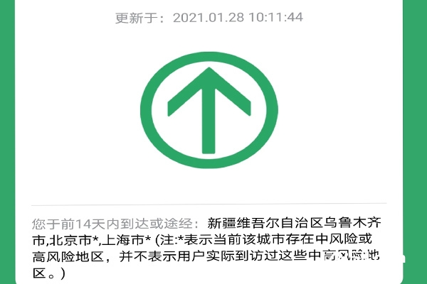 4.2021年1月8日前,行程单上中高风险地区的城市和城镇名称用红色标注。此后,旅行卡中带有中高风险地区的城市名称的标记被更改为在城市名称后的括号中包括中高风险地区。且此言论仅作为出行提醒,与健康状况无关。