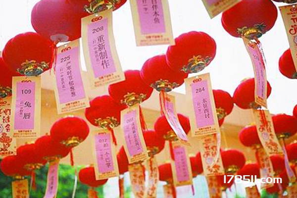 2、猜灯谜是从古代就开始流传的元宵节特色活动,人们会把谜条贴在灯笼上,供人猜。