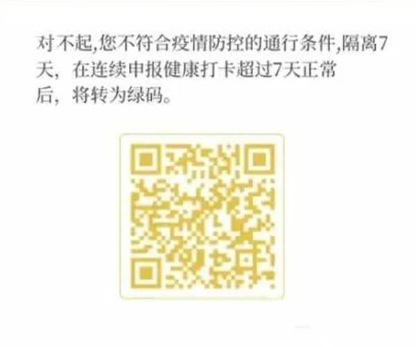 4.卫生代码系统有时会做出误判。如果卫生代码系统确定您是黄色代码员工,您的卫生代码也将是黄色的。如有误判,及时反馈情况,24小时内,健康码会变回绿色码。