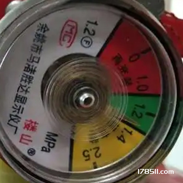 灭火器指针指示黄色、绿色和红色的具体含义。
