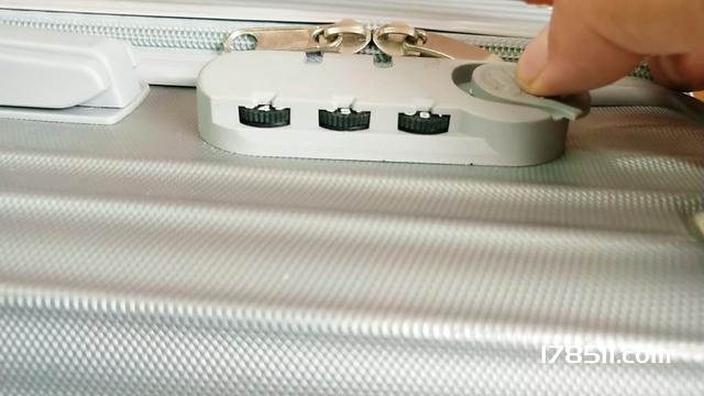 首先这个小秘密就在行李箱密码的下方。仔细看一下就会看到,大家可能没有注意,行李箱密码的下方处有一个小凹槽。我们首先转动行李箱的密码,把这个凹槽找出来。大家会看到,三个密码的凹槽轻松的就能找出来,三个密码的凹槽找出来之后。我们就去转动密码这一个开关,看看是否能打开,密码不对是打不开的。我们顺时针方向让每个数字都转一一个数字。大家看一下能不能打开,要是打不开,接着再顺时针转一下密码。三个数字要同时转,如果打不开,我们再顺时针转一下。大家就会看到,轻松的密码开关就打开了,非常简单,只需几秒钟的时间就能找到忘记的密码。