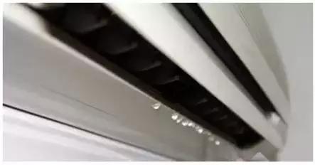 如果室内空气湿度过高,就会导致空气的露点温度升高,此时空调送风口的温度就有可能低于露点温度,导致冷凝水在除了蒸发器以外的第二个地方(出风口)产生。时间久了,就会造成室内机滴水。这种情况可以从室内机的出风口位置,看到明显、均匀分布的水滴。