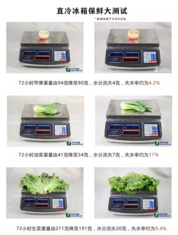 由于风能够带走水分的效果,所以蔬菜的水分流失要大于直冷系统很多。