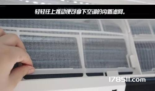 空调过滤网是能够轻松摘除的零件,只需轻轻向上推动就可摘除。