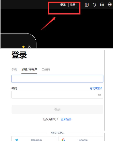 1、首先打开OKX官网,点击页面右上方【登录】按钮,登录你的个人账号(还没有注册的用户点击注册);