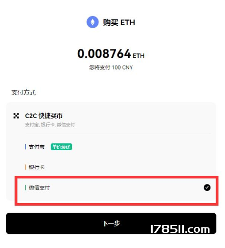 3、进入【快捷买币】页面,选择要买的币种和购买金额,如:购买100CNY的ARB币;