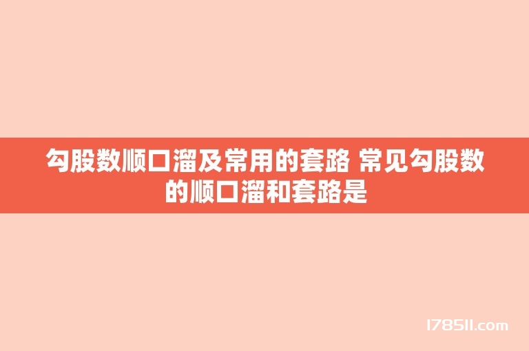 勾股数顺口溜:3,4,5:勾三股四弦五。5,12,13:5·12记一生(13)。6,8,10:连续的偶数。8,15,17:八月十五在一起(17)。常用的套路:当a为大于1的奇数2n 1时,b=2n² 2n,c=2n² 2n 1。