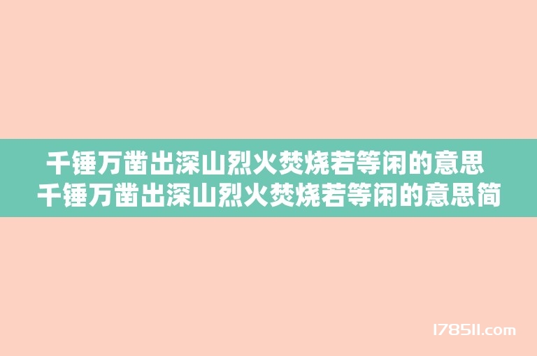 “千锤万凿出深山,烈火焚烧若等闲”的意思是:经过千次锤打万次深凿的石灰石才能从深山中开采出来,熊熊烈火的焚烧被它当成非常平常的事。诗句出自我国明朝时期著名民族英雄于谦所作的《石灰吟》一诗,作者在诗中以自己比作石灰石,这种精神被后世人久久传颂。