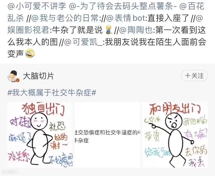 原标题:社交牛杂症什么意思? 社交恐惧症和社交牛逼症的混合体了解一下          社交恐惧症和社交牛逼症的混合体。 具体表现为:生人面前唯唯诺诺,熟人面前重拳出击。