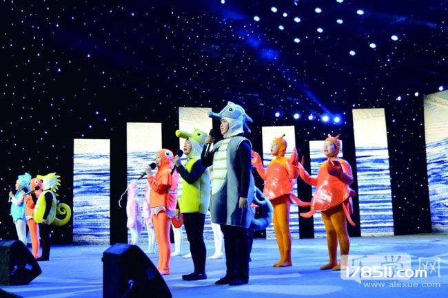 来自市南区实验小学的同学们化身“小丑鱼”“小海马”等海洋生物,在决赛正式开场前上演了精彩的海洋科普情景剧——《大海的故事》,将向阳红九号科考船比作大鲨鱼,将蛟龙号科考船比作大章鱼,表达对神秘大海的向往和对科学家们的崇敬。