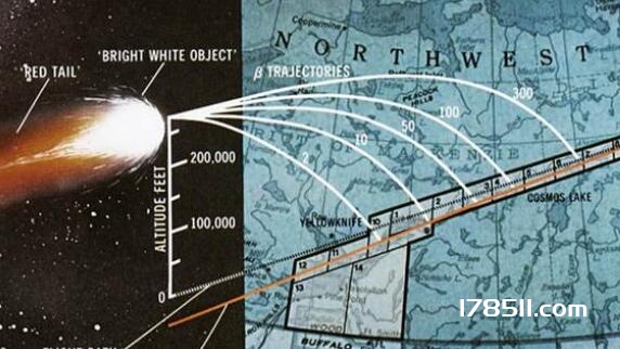 苏联核能卫星宇宙954的坠落位置意示图。